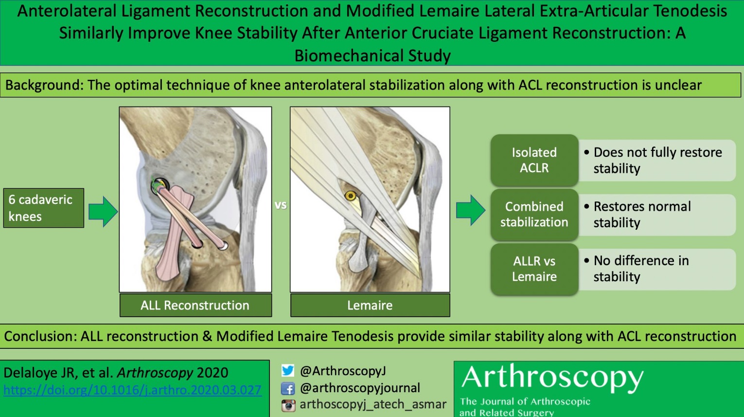 Estudios biomecánicos han confirmado que tanto la técnica de Lemaire como la reconstrucción del ligamento anterolateral, cuando se combinan con la reconstrucción del LCA, restauran la estabilidad rotacional y anteroposterior de la rodilla a niveles similares a los de la rodilla sana, sin sobreconstraint significativo.